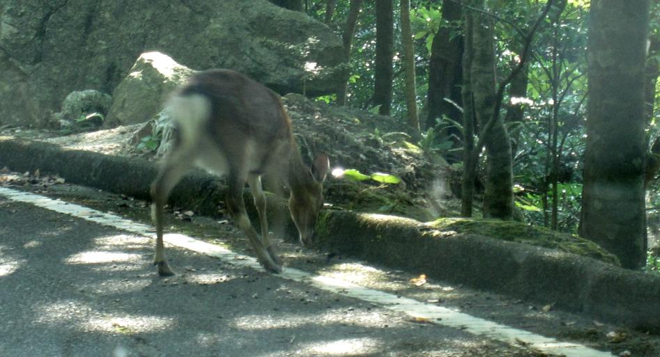 野生の猿や鹿が、わがもの顔で道路を歩いてます。