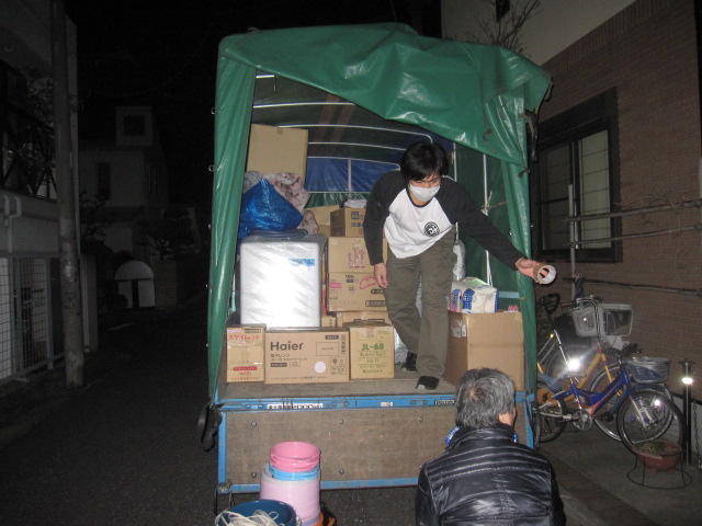 そしてその日の夜に調達物資を2トントラックにすべて積み込みました。